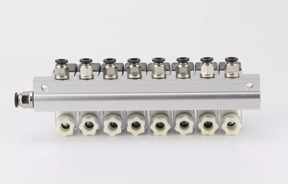Depende sa mga direksyon ng intake at exhaust, ang 2V025 Solenoid Valve Manifold ay maaaring hatiin sa mga uri ng positibong presyon na may isang pumapasok at maraming saksakan, at mga uri ng negatibong presyon na may maraming mga pumapasok at isang labasan. Maaaring ilapat ang negatibong presyon sa mga vacuum pump. Dahil ang positibo at negatibong presyon ay gumagana sa magkasalungat na direksyon, mangyaring kumonsulta sa OLK sales team bago mag-order