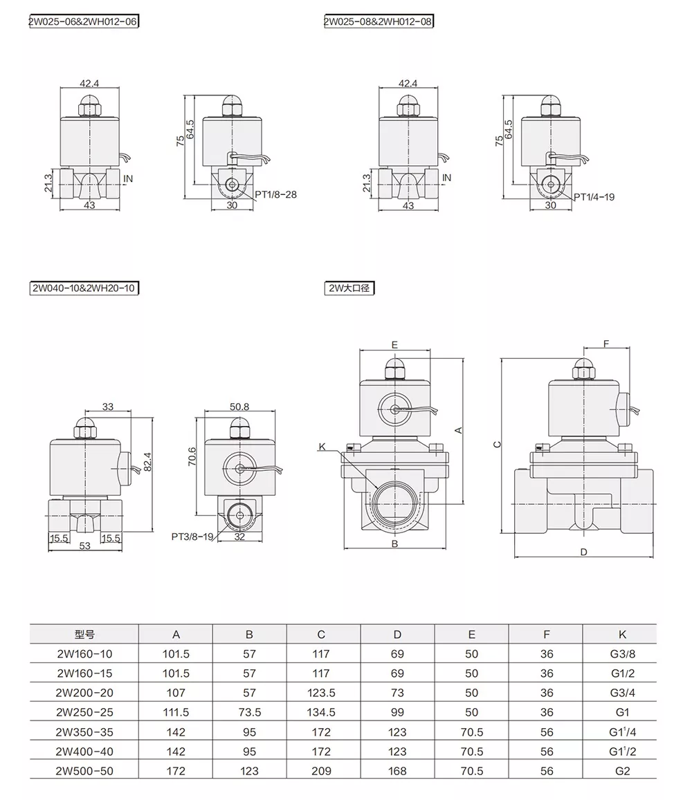 ② Malaking Laki ng Orifice - 2W Series Model Code (16mm -50mm)