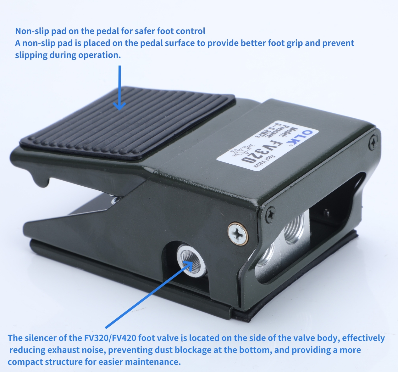 Ang mga kawani ng workshop ay mas madaling gamitin ang kanilang mga paa dahil ang dinisenyo ng OLK na anti slip foot pads ay nagdaragdag ng alitan at tibay.FV420 Padel balbula na tinitiyak ang isang mahabang serive na buhay.