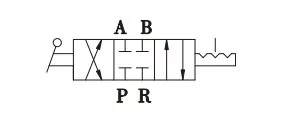 Kapag nakabukas sa 02 gear, ang B exhaust port ay naglalabas ng hangin, ang isang tambutso port vents, at ang silindro ay umaabot.