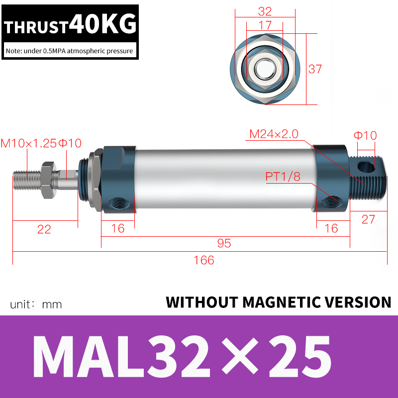 MAL Series mini cylinder Standard na mga pagtutukoy: