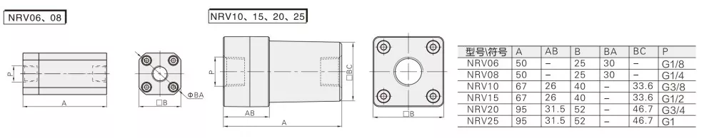 Ang balbula ng tseke ng NRV ay may isang compact at matibay na disenyo, na karaniwang gawa sa aluminyo, tanso, o hindi kinakalawang na asero. Pinapayagan nito ang likido o hangin na dumaloy sa isang direksyon lamang, na pumipigil sa back-flow at protektahan ang system.