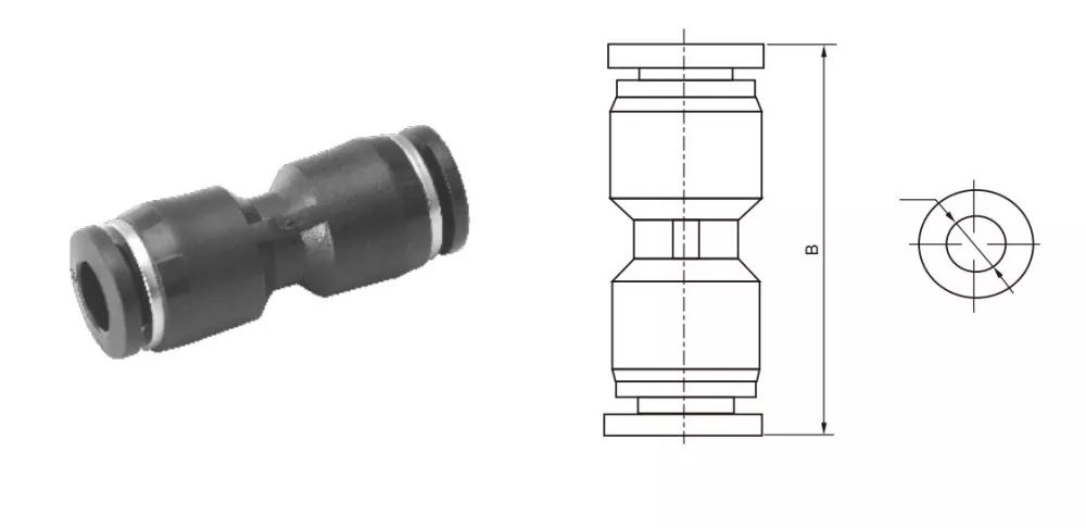 PU Union Straight Push sa Tube Fitting Outline Dimension Parameter