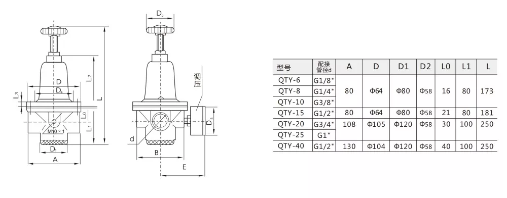 QTY Pressure Regulator Valve Balangkas na Dimensyon: