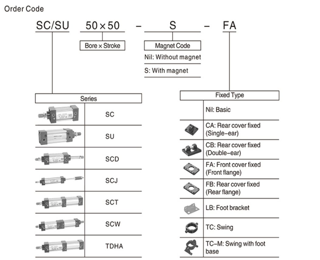 6. Ang mga accessory sa pag -mount ng silindro ay maaaring palitan ng mga cylinders ng serye ng SC.